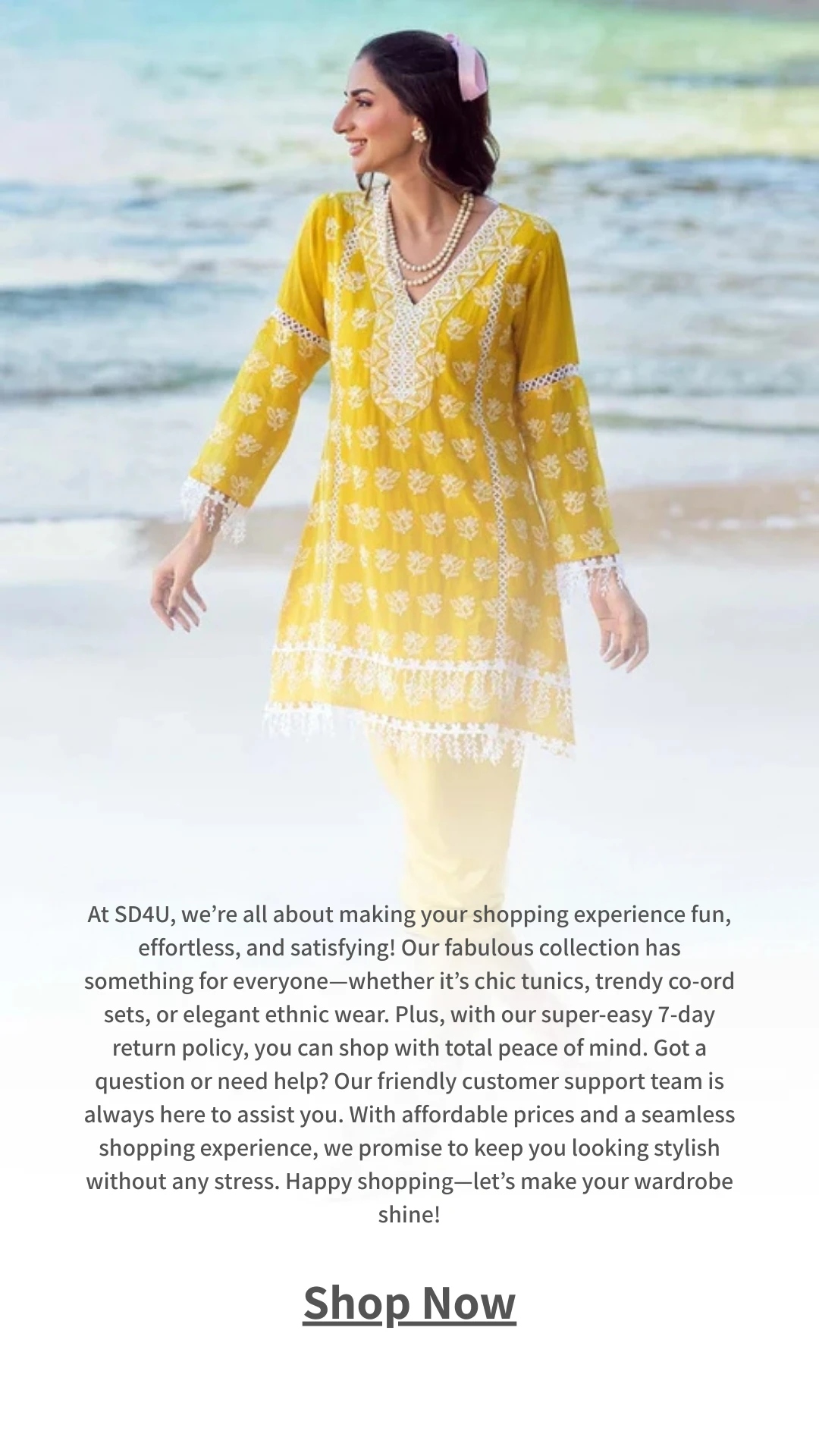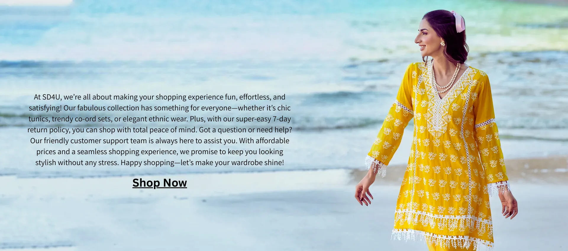 SD4U is your one-stop destination for trendy and accessible fashion in India. Explore our new arrivals to discover the latest in women’s clothing, footwear, and accessories. From chic western wear to stunning ethnic attire, SD4U brings you style for every season and celebration. Embrace the joy of shopping with unbeatable discounts on categories like Anarkali Suits, Bottom Wear, Pant Sets, and more. The magic doesn’t end there—our end-of-season sale ensures that staying stylish has never been more affordable